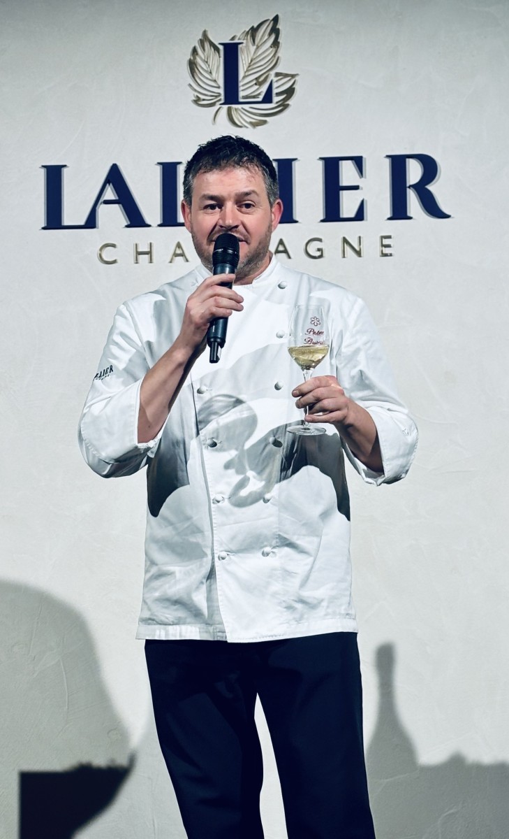 Durante l'evento, è stato lo stesso Dominique Demarville a punteggiare con i suoi racconti la degustazione delle due cuvée, abbinate ai piatti di Peter Brunel. «R.021 Brut Rosé si distingue per il suo colore rosa brillante e luminoso. Al naso emergono note di arancia sanguinella, kumquat e piccoli frutti rossi, arricchiti da sentori di brioche. Il sorso è fresco e minerale, con una persistenza piacevole e una sottile nota tannica che ne esalta la struttura». Il Riso alle rose di Brunel ha saputo esaltarne le caratteristiche. «Non un risotto, ma un riso cotto in un centrifugato di mela e rafano bianco, che dona una nota minerale perfetta per accompagnare l'R.021 Brut Rosé. A metà cottura aggiungiamo petali di rosa e mantechiamo con burro, olio e parmigiano», ha spiegato lo chef.