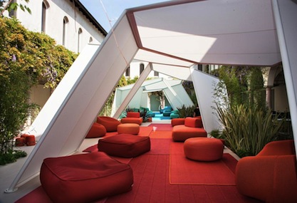 Nei Chiostri della Società Umanitaria, al Fuorisalone, è andata in scena la collezione outdoor 2014 di Paola Lenti. Sedute, lettini, piattaforme, pouf, poltrone, sedie e tavoli, ma anche ombrelloni e strutture per fare ombra. La costante nella ricerca della Lenti è la qualità dei materiali, durevoli nel tempo e resistenti. I materiali vengono declinati in textures coloratissime e ricercate. Interessante è il sistema Resort and Bistrò, stile e funzionalità con una combinazione di cromie e disegni vagamente vintage e Hipster. Un altro sistema interessante è la copertura Pavillion costituita da un “tetto” esagonale e da pannelli laterali di supporto. Grazie a giunti per l’incastro, Pavillion si può modulare a seconda della necessità aumentando i propri elementi e di conseguenza la superficie. Anche questo elemento segue le tendenze del design contemporaneo senza trascurare gli aspetti tecnici e funzionali.