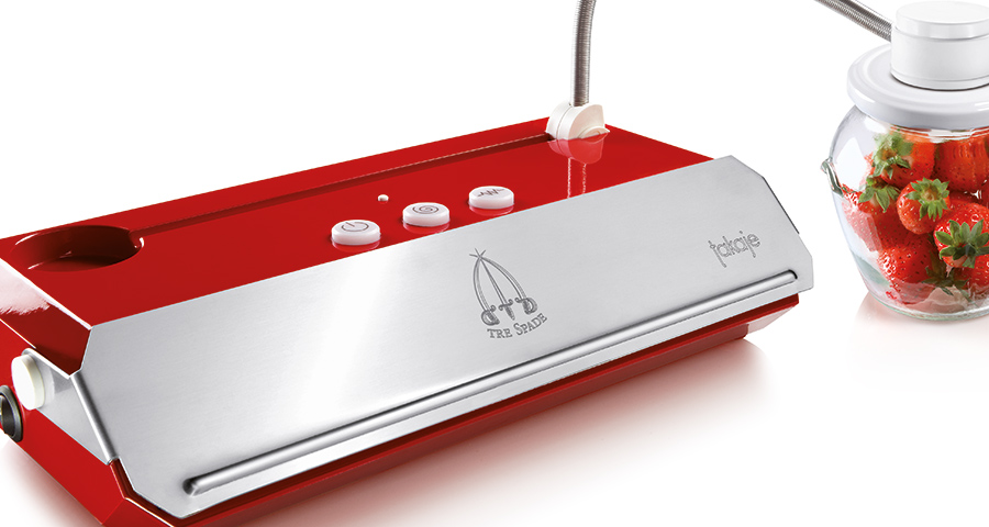 quegli anni, agli intramontabili Spremipomodoro, ai classici Macina spezie fino ai prodotti più innovativi e premiati. Tra gli oggetti in mostra c’è Takaje (nella foto), che in dialetto piemontese significa “ce l’abbiamo fatta”. Ed è vero, perché Takaje Vacuum Seal, la valvola per il sottovuoto realizzata da Tre Spade e progettata da Adriano Design, ha di recente vinto il Premio Compasso d’Oro ADI 2014, uno tra i più prestigiosi riconoscimenti di design. E ancora Toollio, il robot multifunzione per le cucine professionali, anch’esso frutto della collaborazione con Adriano Design, che è stato selezionato dall’ADI Design Index 2014 come uno tra i migliori prodotti italiani di design e si candida al prossimo Compasso d’Oro.