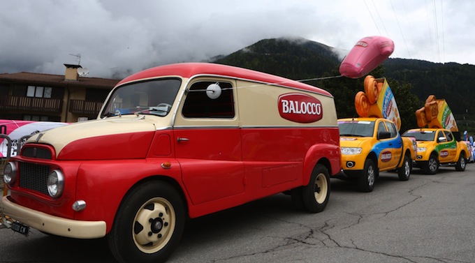 Balocco sarà lo sponsor della colazione degli Italiani offrendo nelle aree di partenza delle singole tappe i suoi frollini, con latte e caffè (oltre un milione di colazioni servite nelle passate edizioni). Saranno inoltre offerti centinaia di migliaia di gadget del Giro d’Italia e proposte attività di animazione, il tutto gestito da una trentina fra hostess e steward Balocco, che si divideranno tra i villaggi di partenza e di arrivo delle tappe e che saranno anche animati da ballerini e bikers acrobatici, sempre Balocco. Della carovana Balocco faranno parte il furgoncino rosso (il Fiat 616 degli anni ’60 protagonista di tutti gli spot del “Paese del signor Balocco”), un double decker inglese ed un air-stream americano, oltre ad una quindicina fra pick-up, autovetture e furgoni Renault e Nissan, tutti completamente brandizzati Balocco, in co-marketing con il gruppo astigiano ERREBI auto – SOS grandine.