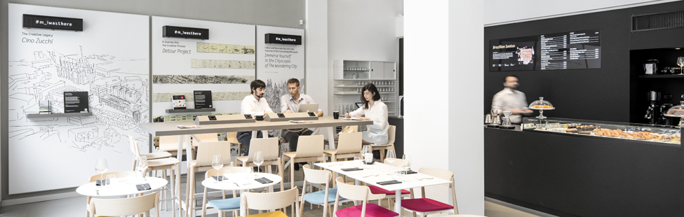 caffè e cibo, la fruizione di contenuti creativi e la disponibilità di strumenti, i prodotti Moleskine, che accompagnano l’espressione della creatività”.
