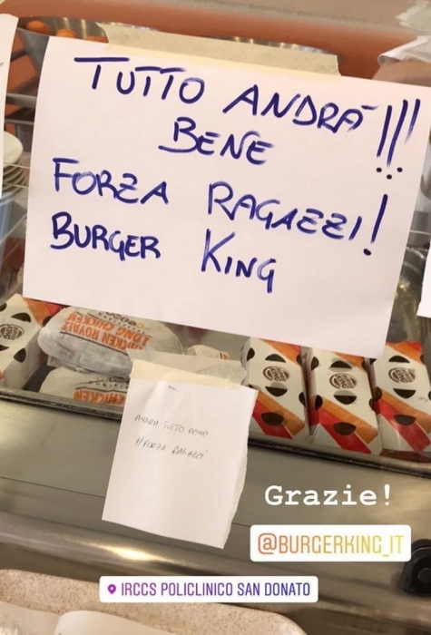 Burger King Restaurants Italia desidera ringraziare tutti gli operatori e i volontari di Croce Rossa Italiana, Caritas, CSV e altre singole realtà di volontariato per la straordinaria risposta alla richiesta di destinare le materie prime dei ristoranti temporaneamente chiusi, a causa dell’emergenza Coronavirus, a chi ne ha più bisogno.