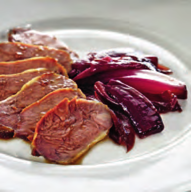 Pulire i guancialetti e metterli in condimento, almeno per un’ora, con olio, rosmarino, aglio, sale e vino bianco; in seguito, scolarli e farli arrostire in forno per 2 ore. Nel frattempo, affettare le cipolle, salarle e farle cuocere con pochissimo olio. A metà cottura far caramellare lo zucchero di canna e unirlo alle cipolle. Sfumare infine con aceto balsamico.