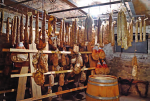 Il nostro locale è una osteria storica nata intorno al 1928. Durante la ristrutturazione abbiamo mantenuto intatti i vecchi locali adibiti alla conservazione dei salumi e dei vini. I salumi vengono realizzati da produttori locali selezionati e finiti di stagionare nella nostra cantina.