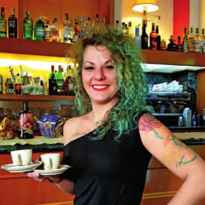 La barlady Francesca Gentile, fondatrice e titolare del Funi1862 di Montecatini Terme, gestisce un locale informale, frequentato da una clientela che non indossa per lavoro giacca a cravatta. E la sua scelta è di lasciare vestire liberamente il suo personale. “È da quando sono ragazza che amo i tatuaggi, sono un modo per raccontare la propria storia senza bisogno di parole. Caso vuole che l’intero staff del Funi1862 sia pieno di disegni sull’argomento pelle: una particolarità che ci ha reso noti in zona. Come mi vedo da anziana? Una signora diversamente giovane”.