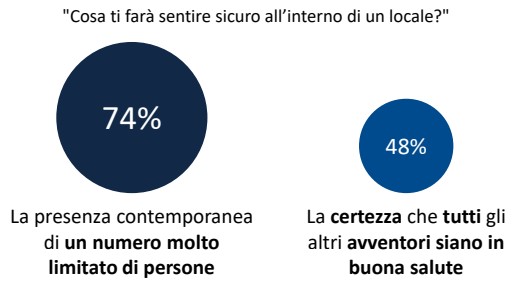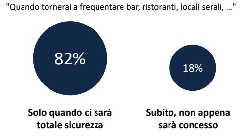 Quasi 1 italiano su 2 (45%) punterà sulla fiducia e la conoscenza personale del gestore. Più in generale, il 70% degli italiani tornerà a frequentare locali conosciuti o già frequentati in passato.