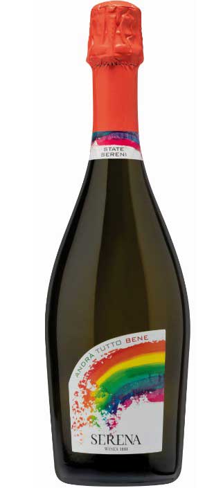Ogni punto di consumo riceverà una scatola omaggio della bottiglia griffata da Serena Wines 1881: bottiglie speciali che avranno sull’etichetta l’arcobaleno e lo slogan che ha accompagnato questi giorni di lockdown, «Andrà tutto bene», e anche l’hashtag #StateSereni che sarà presente sul collarino del prodotto. Ma non solo: ogni bottiglia avrà una capsula colorata di rosso, bianco o verde, per formare un autentico tricolore di bollicine.