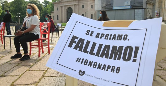 Prima la protesta, poi la rabbia. A Milano, davanti all’Arco della Pace, si è tenuto il flash mob organizzato dal Comitato Horeca Lombardia, con una serie di sedie vuote e cartelli con lo slogan "Se apriamo falliamo", per protestare contro i mancati aiuti alla categoria da parte del governo e per esortare alle riaperture, ritenute indispensabili per non vedere fallire buona parte delle imprese del settore.
