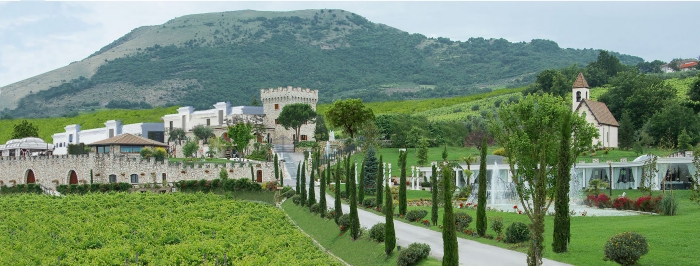 Nel cuore verde dei vigneti di Torrecuso si trova la cantina La Fortezza, un’imponente struttura rivestita in pietra e in completa armonia con l’ambiente. La cantina è composta da due corpi: una parte superiore, la Villa, con ampi spazi verdi dai quali si gode una stupenda veduta sull’Appennino che separa la Campania dalla Puglia, e il secondo blocco che si apre con due portoni in legno in stile medievale, dai quali si accede alla parte produttiva tra tradizione e moderne tecnologie. Il luogo suscita un’atmosfera unica… le volte a botte, rivestite in mattoncini di terracotta, fanno da scrigno alla zona dedicata all’invecchiamento, in parte scavata nel tufo: un ambiente che riporta indietro nel tempo, a quelli che nelle vecchie masserie rurali erano chiamati cellai. A questa parte si affianca quella più moderna con i macchinari di lavorazione e delle linee di imbottigliamento ed etichettatura. A completare il tutto, anche un efficace ed elegante punto vendita.