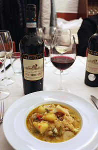 Un’insalata può sembrare leggera ma se il suo condimento è una vinaigrette balsamica ad alta acidità, le cose cambiano. La forza di un piatto non è scontata, ecco perché bisogna concentrarsi solo sull’intensità di ogni componente del gusto (acidità, grasso, dolce…). Identificati tutti i componenti di base nel piatto, si può iniziare a testare le opzioni e i conseguenti abbinamenti. Una volta creato l’equilibrio con i principali elementi del gusto sia nel vino che nel piatto, si può diventare creativi. Come? Abbinando i sapori più lievi. Angelo Uzzo, chef della tenuta La Fortezza (Torrecuso Bn) da sei anni, fa chiarezza sul tandem cibo e vino. “Il cibo è alla base della nostra vita – dice – Ognuno di noi, per svolgere le attività di ogni giorno, ha bisogno di assumere un determinato numero di calorie, ma per me il cibo e il vino sono soprattutto allegria, sono elementi che arredano e scaldano la casa e la cucina, sono il centro della creatività di un piatto. Bisogna partire da qui, analizzare i dettagli gustativi e olfattivi e creare un gioco a incastro”.