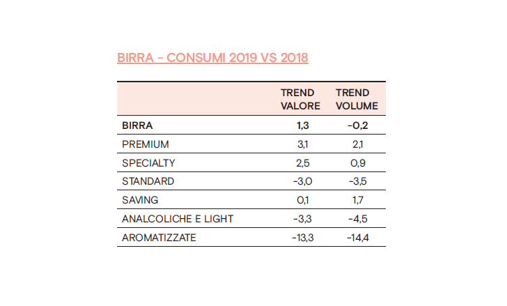 Fino al 2019, la categoria birra, ha dimostrato una spiccata dinamicità, attribuibile al mix di offerta composto da speciali, premium, artigianali e radler. Una proposta variegata che ha stimolato i consumi. Poi lo stop: il comparto ha tirato il fiato, attestandosi su volumi pressoché stabili.