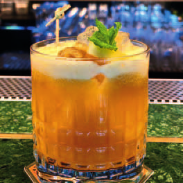 Si prepara tutto dentro lo shaker. Versiamo il gin, il rhum (clairin), il tè alla menta e liquirizia, il cordiale, il barspoon e ossigeniamo (senza shakerare) con il metodo throwing. Prendiamo il tumbler medio, mettiamo il ghiaccio, versiamo il tutto e lo guarniamo con la chips di ananas e un rametto di menta fresca