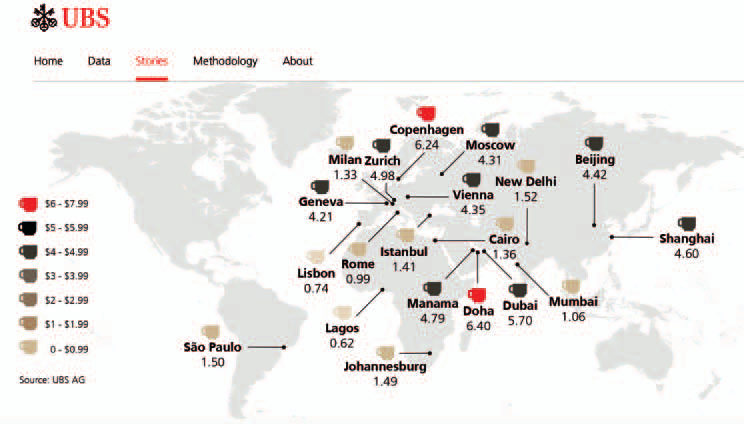 PREZZO DI UN ESPRESSO IN VARIE CITTÀ NEL MONDO
