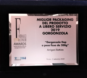 L’innovativo Gorgonzola Dop Arrigoni Battista in vaschetta a peso fisso da 200 g, nella sua morbida e già pluripremiata versione a cucchiaio, ha vinto il premio “Miglior Packaging del Prodotto a Libero Servizio” ai Formaggi&Consumi Awards 2020.