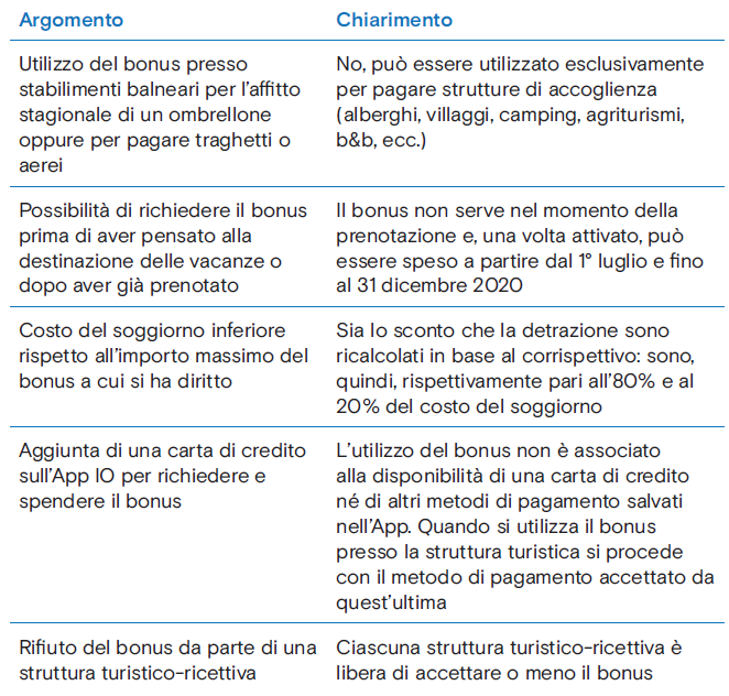 ◼ deve essere speso in un’unica soluzione, presso un’unica struttura turistica ricettiva in Italia (albergo, campeggio, villaggio turistico, agriturismo e bed & breakfast). Nel caso in cui sia emessa una fattura in acconto e una fattura a saldo, con i relativi pagamenti, il Bonus potrà essere utilizzato solo in relazione ad uno dei due pagamenti;