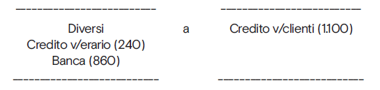 L’albergatore emetterà fattura e verserà l’Iva sull’importo totale, a prescindere del fatto che il 20% sarà fruibile dal cliente con la detrazione fiscale. Segue un esempio in cui si ipotizza la vendita di un soggiorno in hotel del valore di 1000 euro cui corrisponde un credito di imposta di 240 euro (pari all’80% di 300 euro). Le scritture saranno: