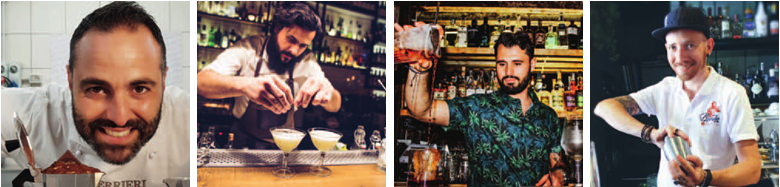da sinistra: Dario Iazzetta, barmanager del Flanagan’s cocktail bar ; Armando Liguori, responsabile di Attimi Divini; Edoardo Sandri, head barman del Four Seasons Firenze; Cristian Lodi, titolare del Milord di Milano[/caption]