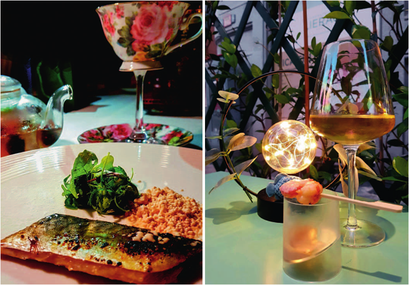 da sinistra: Food Pairing a Sorrento al Majestic Hotel drink di Lucio D’Orsi ; l’offerta fish & wine nel wine bar che la Pescheria Gelmetti di Milano ha aperto davanti al negozio[/caption]