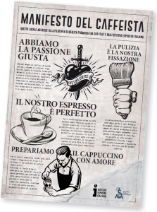 interagire con i clienti in forma attiva, la cosiddetta chiacchiera da bar, ma c’è anche l’opportunità di farlo in modo passivo quando il tempo scarseggia. È infatti possibile narrare il proprio locale e la propria professione tramite cartellonistica, piccoli supporti da banco, schermi. Andando per esempi, eccone uno di immediata applicazione: spiegare in modo accattivante la qualità affiggendo il Manifesto del Caffeista, messo a disposizione gratuitamente da SCA Italy e dall’Istituto Espresso Italiano (IEI) sui propri siti web e social. Oppure rendere disponibili a banco supporti, di dimensioni minime, con lo stesso scopo. Ancora: raccontarsi con immagini su schermi in punti strategici del locale. Tutte azioni a basso investimento, direi quasi nullo.
