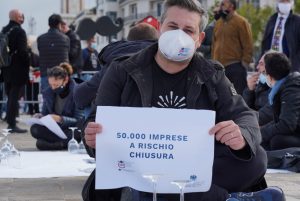 Imprenditrici e imprenditori che, chiamati a raccolta da Fipe – Confcommercio, la Federazione Italiana dei Pubblici esercizi, hanno simbolicamente apparecchiato per terra, disponendo oltre 1000 coperti rovesciati a ricordare alla politica lo stato di emergenza nel quale versa il settore della ristorazione con 300mila posti di lavoro a rischio, 50mila aziende che potrebbero chiudere entro fine 2020 e 2,7 miliardi di euro bruciati solo per effetto dell’ultimo decreto. Protesta del tutto apolitica, pacifica e nel pieno rispetto delle regole, a dimostrazione del grande senso di responsabilità che ha sempre caratterizzato gli imprenditori del settore.