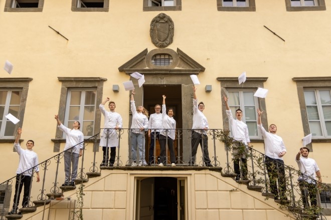 Conclusa la prima parte del corso di formazione “I cuochi del futuro” della durata complessiva di 7 mesi, tenuto dalla Fondazione Gualtiero Marchesi. Il numero degli allievi selezionati per questo corso in formula college a Palazzo Boccella a San Gennaro nel Comune di Capannori, per rispetto delle regole anti-Covid è stato ridotto a soli 9 partecipanti (5 ragazzi e 4 ragazze). Requisito di ammissione era aver ottenuto una valutazione alla maturità superiore a 80/100 e la loro media è stata di 97/100. Provengono da varie regioni d’Italia. La Lombardia, dalle province di Milano, Varese e Como, dal Veneto, Treviso, dalla Toscana, Firenze ed Arezzo e infine dalla Campania, Napoli.