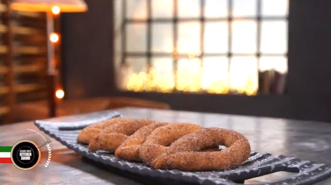 Spezzare con un tarocco, formare due “salsicce”, tagliare in pezzi regolari e formare a mano i torcetti. Passare su ambo i lati i biscotti nello zucchero di canna grezzo, poi disporli sulla placca con carta forno e far lievitare per 2 ore a 30°C. Infine, cuocere a 175°C, a forno ventilato, per 20 minuti.