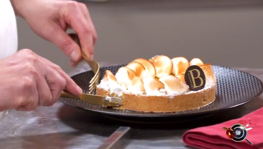 per la pasta frolla: in una planetaria mettere 150 g di farina per pasticceria. Versare 1 albume d’uovo, grattare ¼ di bacca di vaniglia, 110 g di burro reso a pomata, 60 g di zucchero a velo, la buccia grattugiata di 1 limone e 1 pizzico di sale. Impastare e preservare questo impasto in frigorifero in una busta chiusa per almeno 1 ora.