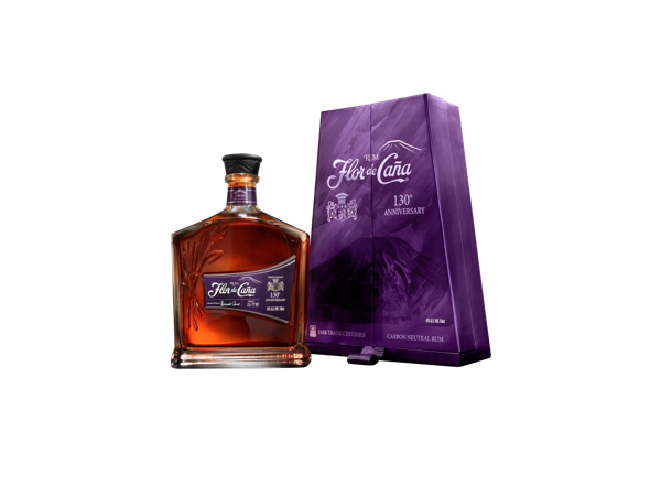 Flor de Caña 130th Anniversary è una limited edition nata dalle riserve della famiglia fondatrice Pellas. Rum invecchiato naturalmente senza zucchero aggiunto e certificato Kosher. Dal color rame intenso, presenta sentori di frutta secca, spezie calde, legno e vaniglia; rum complesso dal corpo pieno e avvolgente, il finale è lungo ed equilibrato; perfetto da gustare liscio o con ghiaccio. Ogni bottiglia, numerata e firmata singolarmente dal Maestro Ronero , è presentata in un elegante cofanetto viola la cui forma è ispirata al vulcano nicaraguense San Cristóbal. Questa bottiglia da collezione sarà disponibile a partire da metà dicembre con un ristretto numero di esemplari.