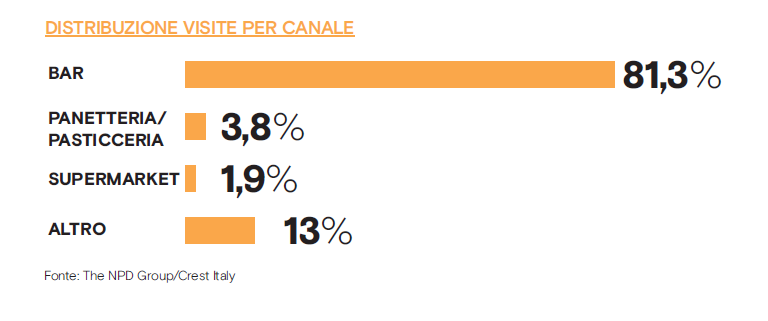 Tra i luoghi nei quali gli italiani preferiscono consumare cornetto & cappuccino fa capolino per la prima volta un canale inedito: il monitoraggio di NPD Group inserisce infatti nella lista anche i supermercati, cui è attribuita un’incidenza vicina al 2%. Nel segno della continuità si pone invece il risultato relativo al vertice della classifica: al comando si confermano i bar, che con l’81,3% certificano un’assoluta e inscalfibile supremazia in materia di colazione. Molto a distanza, si collocano panetterie e pasticcerie, che non vanno oltre il 3,8%.