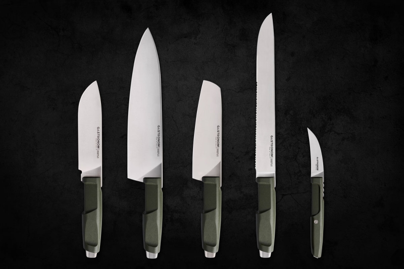La linea dei primi coltelli Gastronom, in vendita anche online su www.gastronomknives.com, è composta da cinque referenze: Total Cut, il coltello versatile e multiruolo in grado di svolgere la maggior parte delle preparazioni in cucina, Heavy Cut, un trinciante grande, maneggevole e preciso, perfetto per la maggior parte degli impieghi, Green Cut, ideale per le verdure e gli ortaggi, Bread Cut, studiato per i cibi che presentano una superficie esterna resistente ed un interno morbido, e Fine Cutper l’utilizzo di precisione nei piccoli tagli e nelle incisioni, sia decorative che per il condimento.