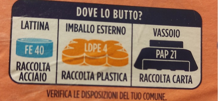 Fin qui, le indicazioni basiche. Ben vengano poi quelle accessorie relative al tipo di imballaggio (flacone, bottiglia, vaschetta ecc.) o alle modalità per una differenziata di qualità (schiaccia, separa l’etichetta ecc.).