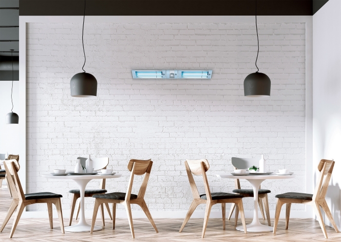 È un apparecchio facilmente installabile che sfrutta i raggi UV-C, una componente della luce solare, neutralizzando in breve tempo fino al 99% di batteri, virus e altri organismi, senza alcuna emissione di ozono o di sostanze chimiche e garantendo, così, sicurezza di utilizzo, sanificazione continua e ridotti costi. Dal momento in cui la lampada viene spenta, le superfici disinfettate sono immediatamente utilizzabili. Abbinata a un rilevatore di presenza, che ne garantisce lo spegnimento automatico in presenza di persone, è particolarmente adatta alla sanificazione di locali frequentati dal pubblico lungo tutto l’arco della giornata.