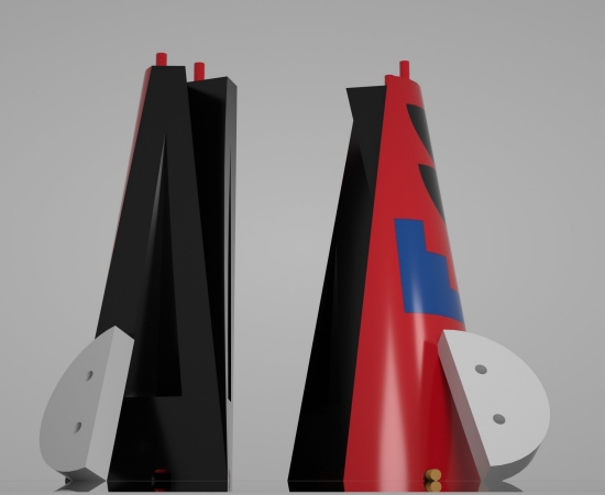 Marco Oggian descrive così la propria opera: “Nella realizzazione di DUO nulla è stato lasciato al caso e il sistema di chiusura e apertura vive in perfetta coesione con l’architettura generale. Inoltre, l’oggetto non poteva che essere di un colore: rosso Campari Soda! Una tonalità che si adatta perfettamente alle mie forme e colori personali”.