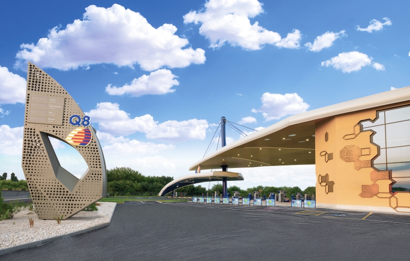 Sviluppato su un piazzale di 8.000 mq, l'impianto garantisce numerose postazioni di rifornimento sia per veicoli con motorizzazione tradizionale endotermica (benzina, gasolio, gpl e a breve metano) che per quelli elettrici con ben 6 postazioni di ricarica di cui 2 ultrafast 300 kW. Parte dell'investimento relativamente a metano ed elettrico è stato finanziato con il contributo di fondi europei "Connecting Europe Facility" a supporto del progetto Q8 "Cre8 - Creating the Station of the Future" volto a realizzare infrastrutture dotate di metano e ricariche elettriche. Il progetto architettonico è ispirato alle vele della "Dhow", la tipica imbarcazione del Kuwait, lo Stato dell'azionista di riferimento. Le stesse vele costituiscono le icone distintive del marchio Q8, simbolo di tradizione ed innovazione, presente sul mercato italiano da 35 anni.