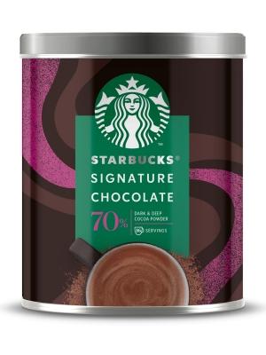 STARBUCKS Signature Chocolate 70%, la scelta giusta per una bevanda corposa al cioccolato fondente, con solo un tocco di dolcezza, perfetta per chi ricerca un sapore deciso al palato.