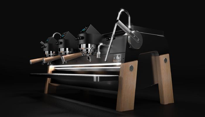 Quattro gambe in rovere sollevano la macchina donandole dinamicità e completando la palette cromatica che identifica Biepi: nero, acciaio inox e legno. Le leve zigrinate, le lance vapore e i gruppi esterni mantengono il volume della macchina il più snello possibile, donandole pregio e luminosità grazie all’acciaio cromato.