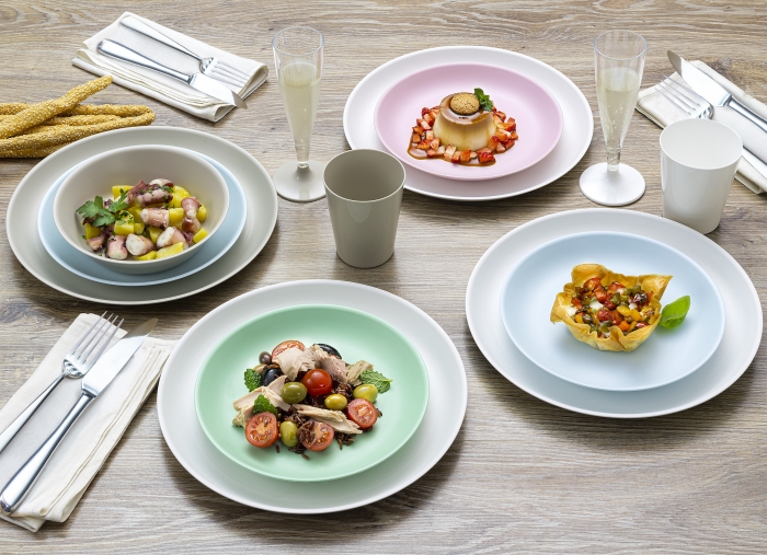 Sebbene con un posizionamento di prezzo decisamente più competitivo, anche la linea di piatti MINERAL si presenta sul mercato con caratteristiche inedite e innovative dato che utilizza un polimero contenente materie prime di origine minerale, che conferiscono al prodotto una maggiore rigidità e uno speciale additivo antigraffio che ne prolunga la durata. Il tutto mantenendo la massima riciclabilità e, naturalmente, la massima sicurezza al contatto alimentare.