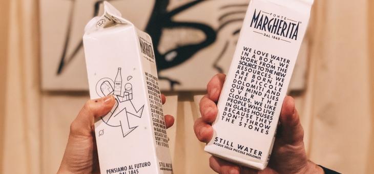 La confezione è in cartone interamente riciclabile, incluso il tappo, e consente un suo facile riuso. Piacevole e accattivante il suo design, frutto della collaborazione di due professionisti che provengono da mondi diversi e che hanno trasferito nel brick Fonte Margherita le proprie visioni. L’innovativa grafica è di Francesca Chiani che proviene dal mondo del fashion e che regala felici contaminazioni alla confezione mentre le diverse illustrazioni sono di Ale Giorgini, un disegnatore vicentino che ha esposto a New York, Parigi, Tokyo e Shanghai.