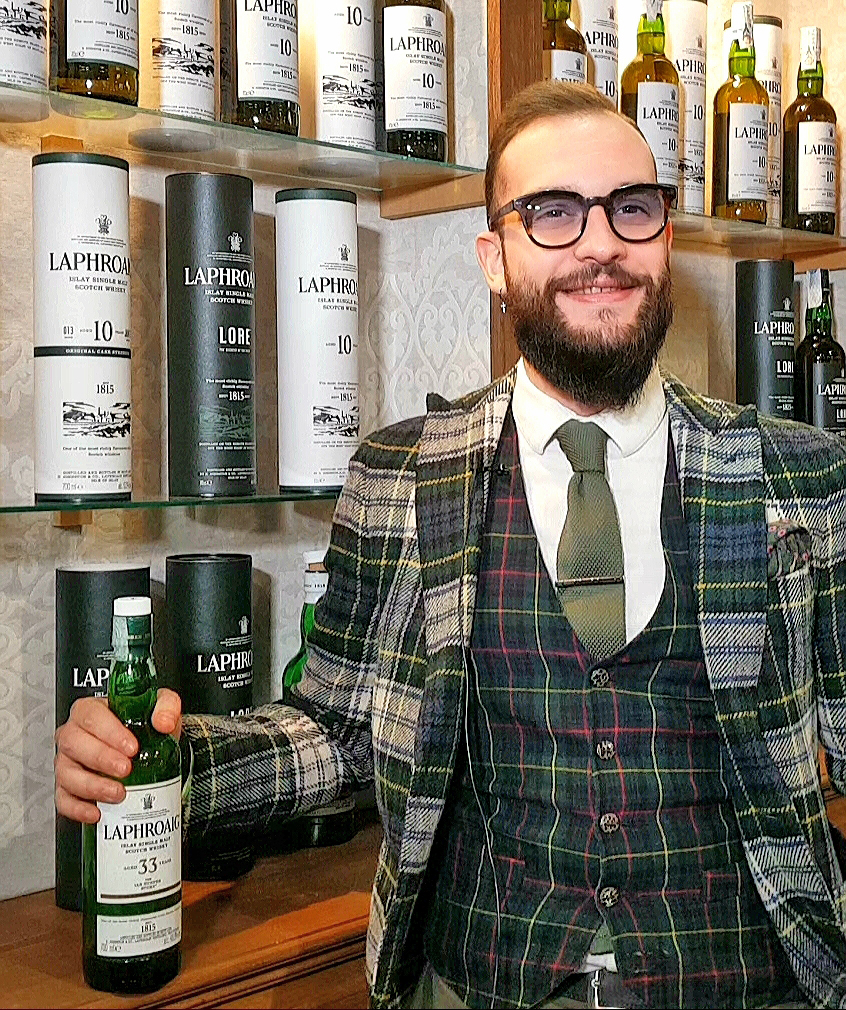 La degustazione verticale con tanto di lezione costava 80 euro e aveva per protagonisti il 10 anni, 10 anni Cask Strength, 25 anni e Laphroaig 33 anni Ian Hunter Chapter 3.