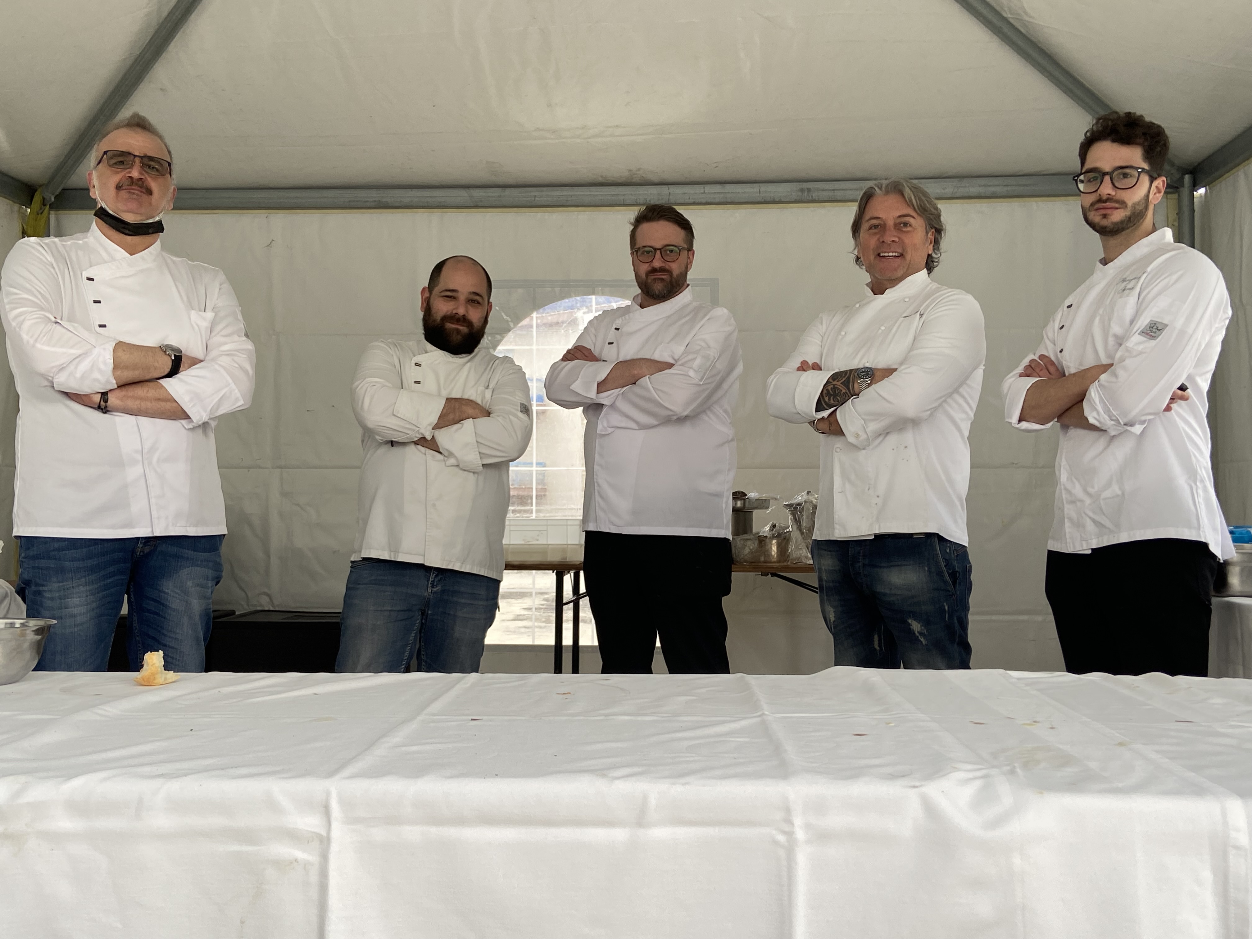 l vino Cococciola LuSciablì 2018 e allo Chardonnay Santagiusta 2018, entrambi IGT. All’antipasto (baccalà mantecato con spuma di patate e olive di Gaeta), è stato affiancato un Villamagna Riserva 2015 Doc. Al primo piatto (tortelli di genovese di maiale nero) un Santinumi 2014 Riserva Montepulciano Doc, e al secondo (stracotto di manzo con crema di patate al burro) un corposo Trinità 2001 Riserva Montepulciano Doc. Gran chiusura con il Gelato Cordano a base di riduzione di Montepulciano Santinumi realizzato dal maestro gelatiere Elvan Di Blasio. Il gelato è stato accompagnato da un Santagiusta Brut metodo classico.
