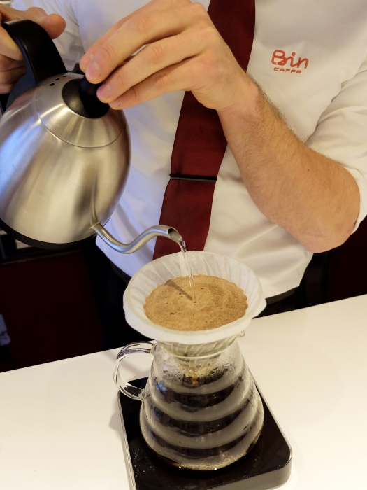 Disponibile in confezioni da 350 grammi, è una proposta ideale anche per i baristi che coltivano la passione per l’eccellenza, che ora possono intraprendere la preparazione del V60 seguendo i corsi di formazione gratuiti offerti ai clienti Bin Caffè. Il tema del seminario illustrerà infatti il metodo di estrazione idoneo a creare una soluzione bilanciata e ricca di profumi, secondo la tecnica del pour over (letteralmente, “versare sopra”) che consiste nell’ottenere la bevanda versando l’acqua direttamente sulla polvere di caffè. Una preparazione versatile, che permette di modulare il gusto secondo le proprie preferenze.