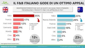 Per quanto riguarda l'Europa, se in Germania l'export cresce del 15%, anche nel Regno Unito post Brexit gli acquisti di prodotti alimentari italiani non sono diminuiti, portando ad una crescita della quota di mercato tricolore, passata dal 5,6% al 6,3%, pur all'interno di un trend di riduzione delle importazioni totali di food&beverage.