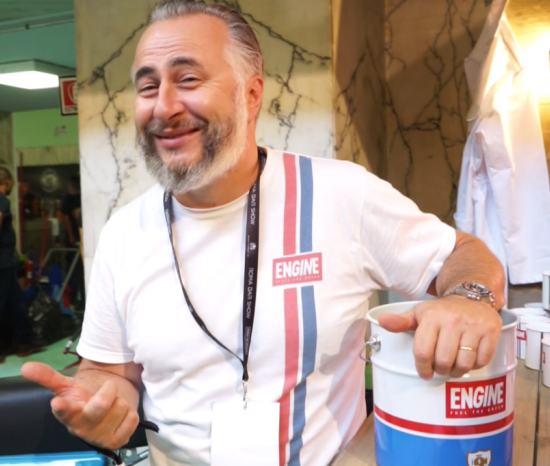 Engine in inglese significa motore. “Il tributo è ai segni caratteristici del mondo delle macchine, come la spia dei vecchi Land Rover racchiusa all’interno di uno scudo d’oro e il numero 01 che richiama le auto da corsa e la mitica Lancia Delta S4. Sta riscuotendo successo anche lo SpeakEasy Kit, un set per il Gin Tonic (che noi chiamiamo GT), a forma di tanica di carburante”.