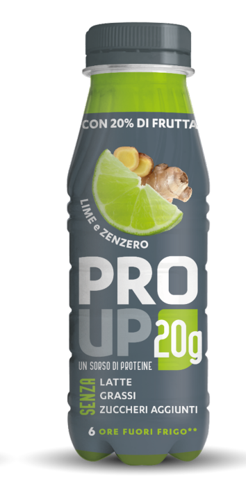 ProUp è un vero e proprio “sorso di proteine”: ogni bottiglia da 250 ml, ne contiene 20 g (circa il 40% del fabbisogno giornaliero medio). A rendere questa bevanda unica tra le tante proposte presenti sul mercato, inoltre, è anche l’elevata percentuale di frutta, pari al 20%, e i due gusti naturali mirtillo e lime-zenzero che, oltre a rappresentare una vera novità sul mercato, donano un gusto fresco e piacevole al prodotto.