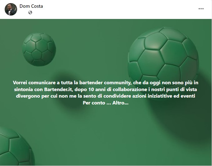 Dom Costa dice addio a Bartender.it. E lo fa su Facebook con un messaggio scarno che copiamo qui sotto.