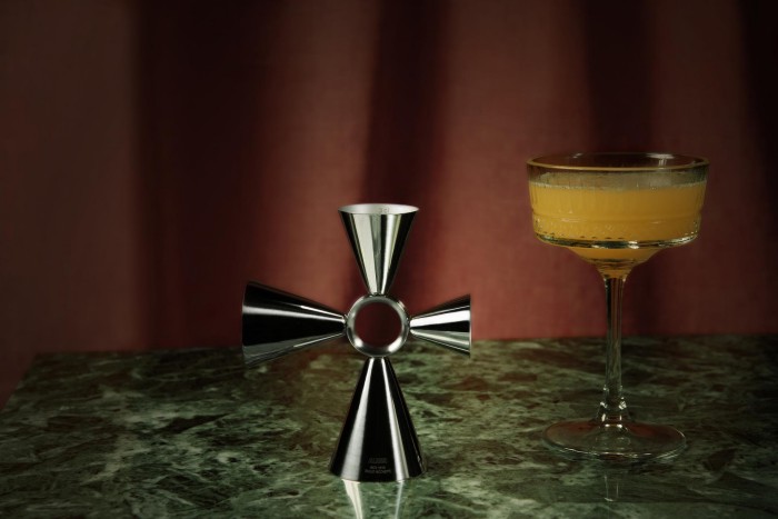 Giulio Iacchetti e Oscar Quagliarini compongono intorno a un anello le quattro misure comunemente usate nelle preparazioni dei cocktail, ripensando nel suo progetto il gesto stesso del dosare: nel suo armonioso roteare tra le dita il Quadri Combo Jigger si fonde organicamente con i movimenti fluidi del mixologist.