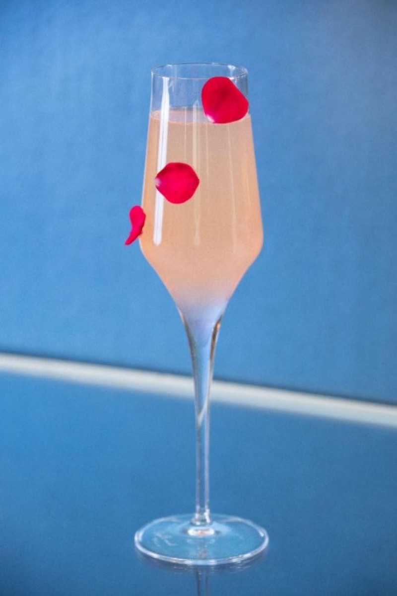 Servire in coppa da vino con tanto ghiaccio o in un flute; decorare con un lampone o dei petali di rosa.