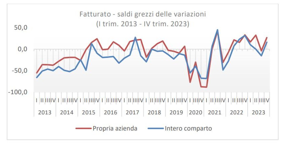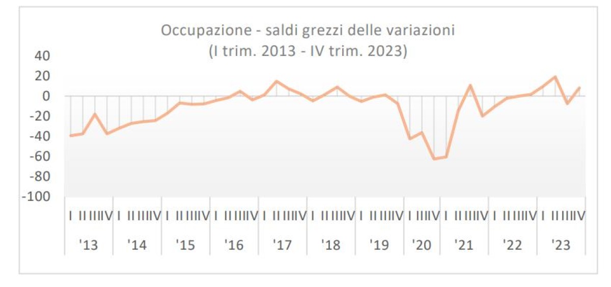 Per quanto riguarda la dinamica dell’occupazione, il IV trimestre del 2023 fa ben sperare per i prossime mesi con saldo che si è attestato a +8,2%. Nella media dell’anno il saldo registra un incremento di 9,6 punti percentuali sul 2022.