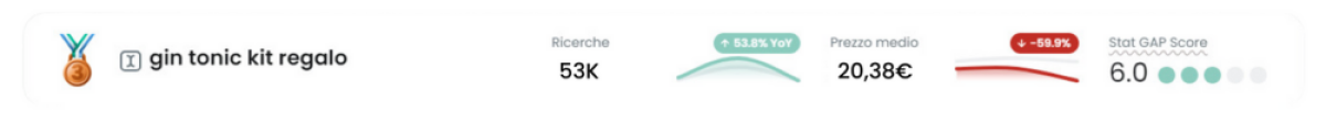 Su Amazon Italia le ricerche di gin nella confezione "calendario dell'Avvento" sono state circa 9000 con picco nel mese di novembre. Risultato analogo lo ha registrato Mr. Dee Still, confermando la tendenza e sottolineando quindi quanto possa essere strategico per le aziende offrire sempre più confezioni speciali dei propri prodotti, intercettando e soddisfacendo così le esigenze di una clientela fortemente attratta dall'originalità e dalla personalizzazione del prodotto.