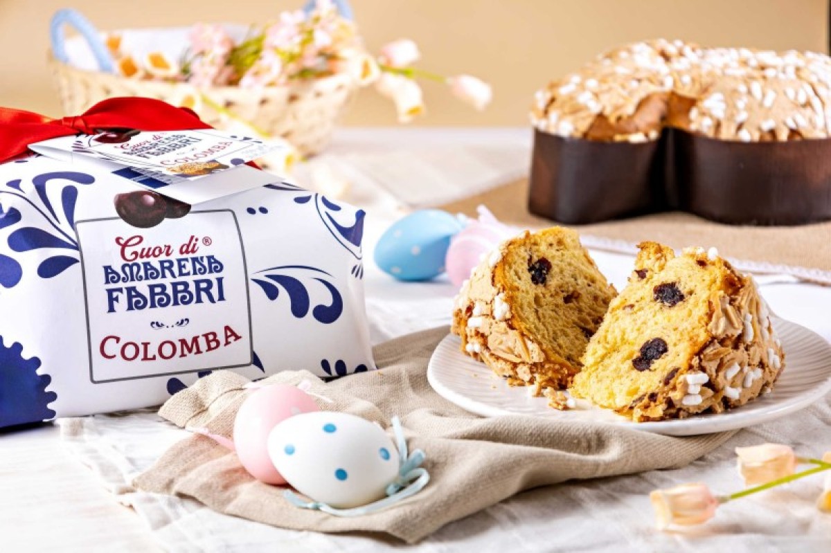 Con un impasto ricco di Amarene Fabbri, la Colomba si distingue per un gusto pieno e avvolgente. Il processo di lievitazione lenta, grazie all'utilizzo del lievito naturale, conferisce inoltre una consistenza soffice e una evidente fragranza.
